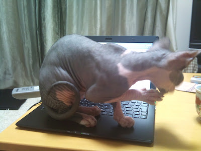 2010-09-02 今日の吉良さま:PC上でくつろぐの巻 猫 吉良上野介 スフィンクス 吉良さま、パソコンをいじってると100%乗ってきます。ってゆうか猫全般?新聞とか雑誌を床で開いて読んでると、悠然と乗ってきてくつろぐのです・・・あったかいから?