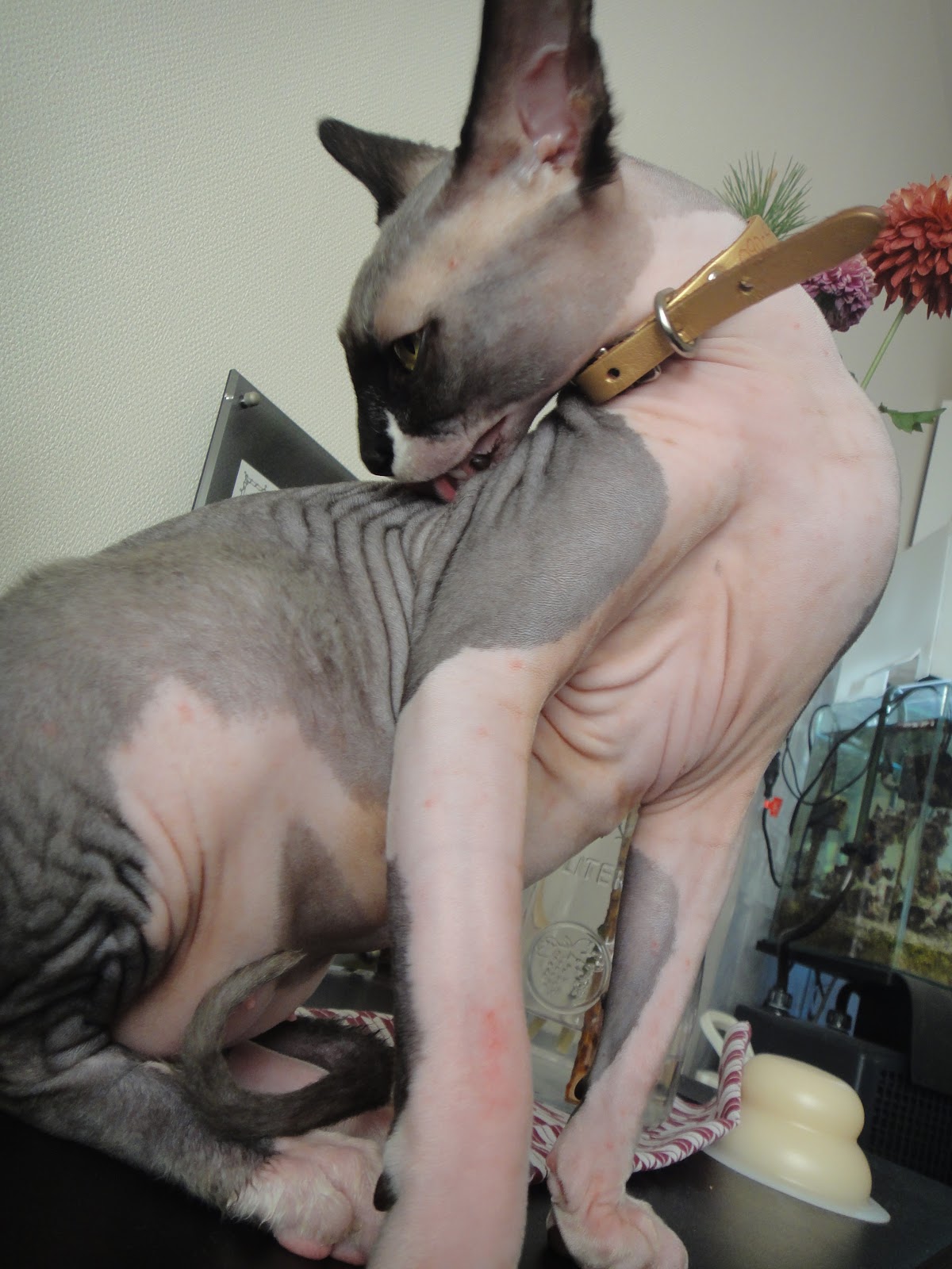 風呂の後、グルーミングに励む吉良さま。反省の色無しヽ(`Д´)ノ
