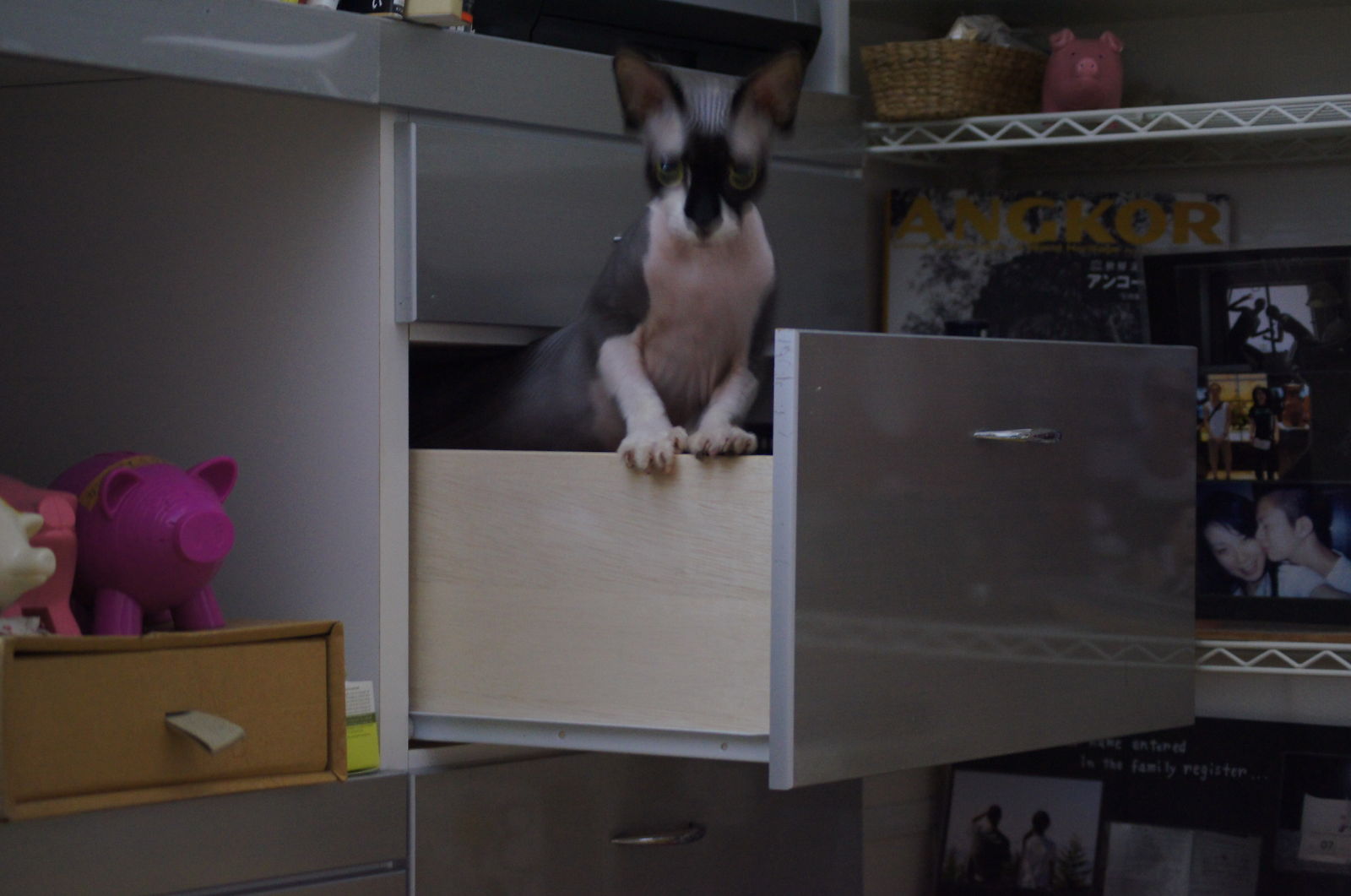 2012-05-09 吉良上野介、2歳。 猫 吉良上野介 スフィンクス 5/8は吉良の誕生日です。二歳になりました。|д゚)チラッどっこらしょ。おめでとう吉良。っていうか出てこーーーい!!ヽ(`Д´)ノいろんな飼い主さんたちのスフィンクスブログがいっぱい(ΦωΦ)