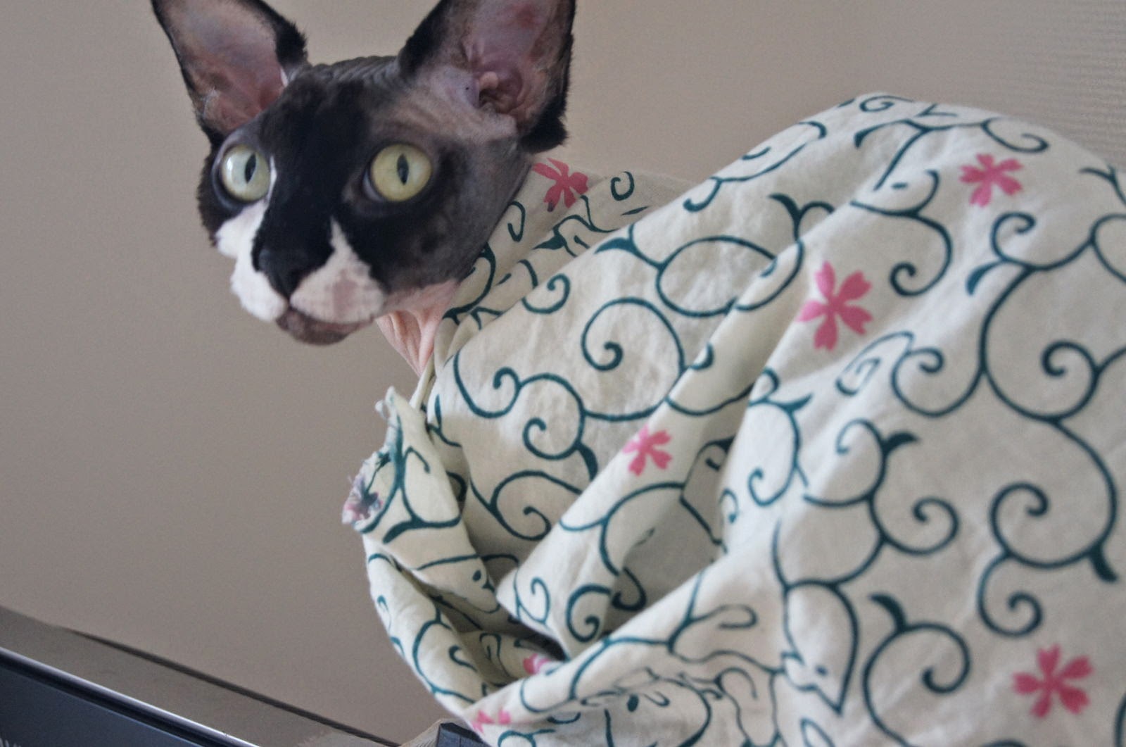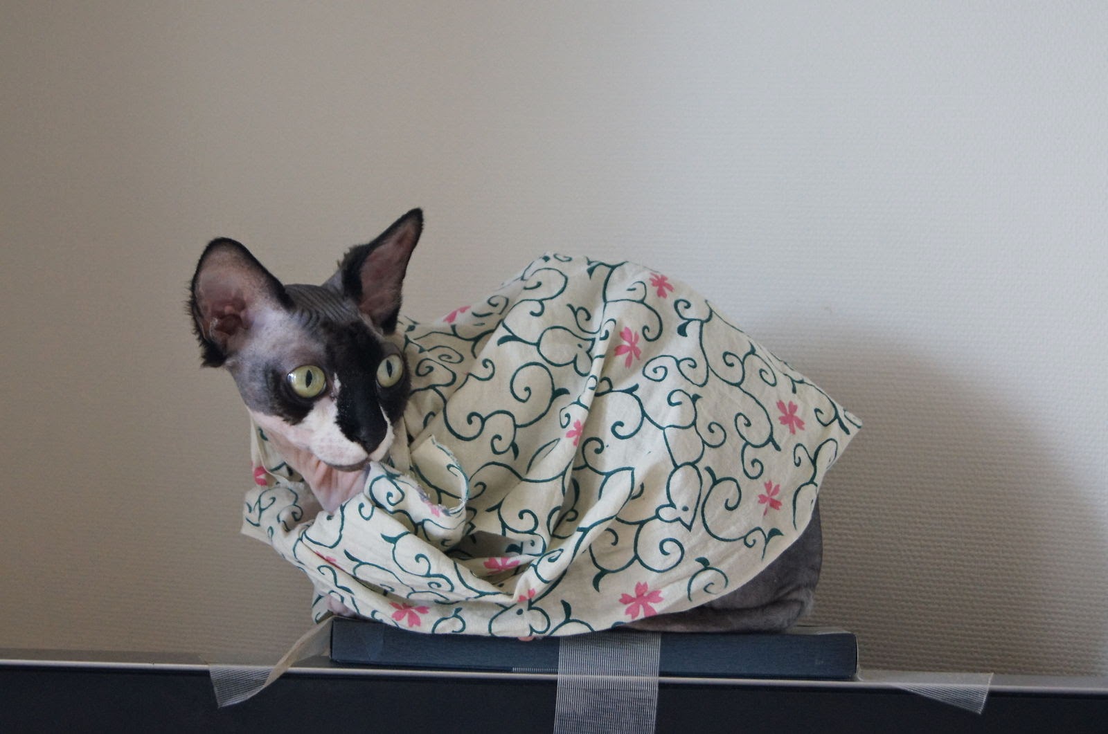 2014-07-29 手みやげではありません。吉良上野介です。 猫 吉良上野介 寒そうだったので手ぬぐい掛けたりました。 手みやげではありません。 暖かいかな?? いろんな飼い主さんたちのスフィンクスブログがいっぱい(ΦωΦ)